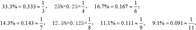 上面各数都是分子为“1”分母为整数的“单位分数”,是使用频率较高的“多位特殊数”,除此之外的其他“多位特殊数”大家也可以有一定的了解: