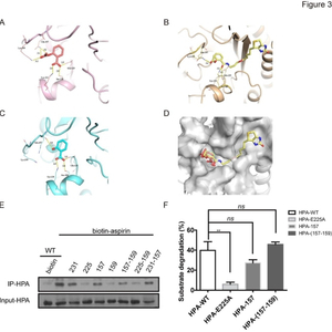 为剖析阿司匹林的抗肿瘤转移的作用靶点,中国科学院上海药物研究所研究人员从药物-蛋白质组学研究出发,首次发现乙酰肝素酶为阿司匹林潜在的抗肿瘤转移作用靶点。乙酰肝素酶是哺乳动物体内唯一能够识别HSPG多糖侧链-HS结构的内源性β-葡萄糖醛酸酯酶,与肿瘤的转移密切相关。研究表明,阿司匹林通过结合于调节乙酰肝素酶的酶活关键氨基酸Glu225位,抑制酶活功能,调控相关信号通路,从而抑制肿瘤的血管新生和转移。