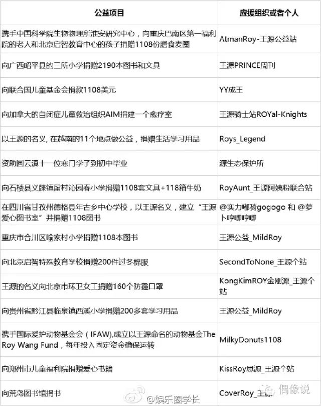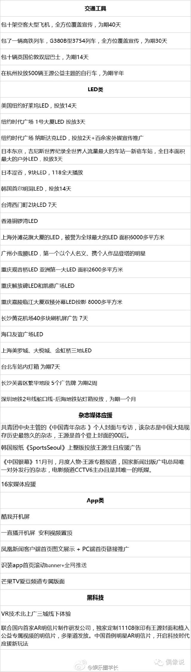TFBOYS的另外两位的粉丝也不甘示弱,去年王源生日的应援清单如下:
