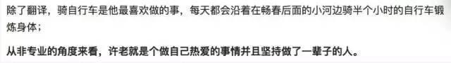 而就是这样一位96高龄的老人,直到现在还每天工作到凌晨三、四点,对于“熬夜”,他贡献了一版颇文艺的说法,“从夜里偷点时间。”一生翻译了无数译诗译文的他,自己生活却过的十分简陋,有网友晒出曾与许老的一段往事: