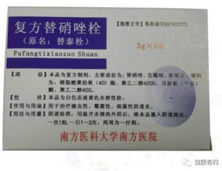 【成份】主要成份为:替硝唑、克霉唑、氯霉素。辅料为:硬脂酸聚烃氧(40)酯、聚乙二醇4000、聚乙二醇400、月桂氮䓬酮。