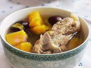 材料:栗子400克(去壳)、红薯适量,两根排骨,400克红枣,姜、水适量。