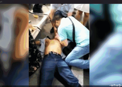 根据网上流传的视频,武汉市第四医院认出,现场帮忙扶着头协助抢救的“蓝衬衣”是该医院的物业经理王军。