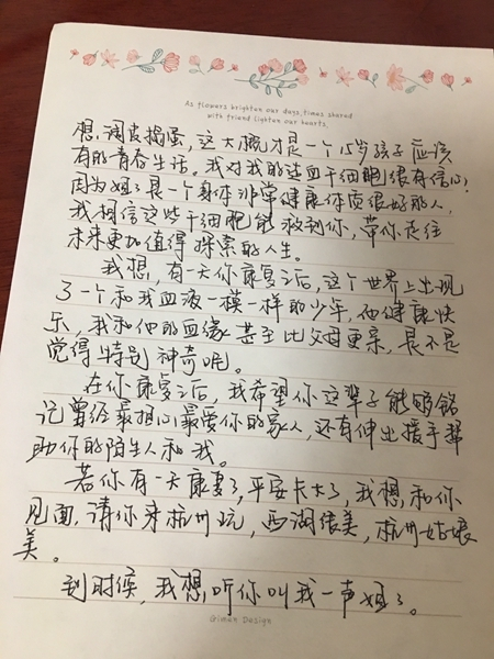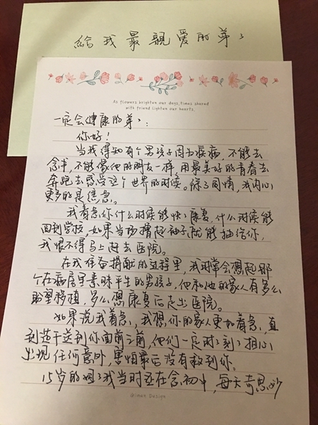 捐造血干细胞的杭州“最美女孩”收到“弟弟”家人回信了