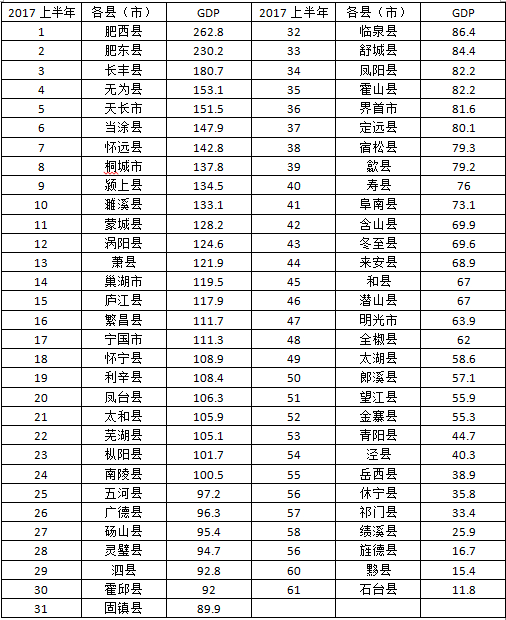 【扩散】安徽61县(市)最新经济实力排行榜,快看看你的家乡排第几?