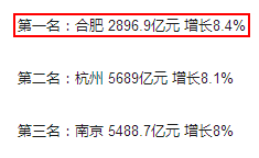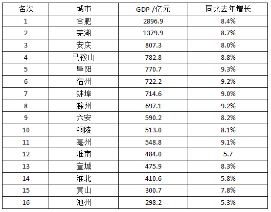 上半年安徽班长大大合肥GDP2896.9亿元,