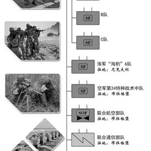 二是“全球特种部队网络”。美国国防部2013年授权特种作战司令部负责各战区特种作战司令部的人员、装备和训练等行政管理职能,从而把各战区以及盟军特种部队等全球分散部署的特战力量,整合为一个密如织网的“全球特种部队网络”,形成“一体联动”的信息共享和协同作战效果,以“合力”优势有效应对“基地”组织和“伊斯兰国”等跨区跨域威胁。在此战法指导下,美军特种部队近年来先后取得生擒“基地”组织头目阿布·阿纳斯·利比以及剿杀“伊斯兰国”重要头目阿布·萨耶夫等一系列战绩。正如前国防情报局局长迈克尔·弗林所言,“情报审讯工作、高端通信技术、有效战场行动的无缝融合……让我们比敌人行动更为迅速、手段更为残酷、反应更为灵敏,这就是我们最终的取胜之道”。(付征南)(本版制图:逄忠平)