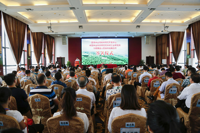 桉树中心,四川省林科院,鹿寨县委、人大、政府;广西林业产业行业协会,广西国有三门江林场等有关负责人和专家参加了签约仪式。(中国林科院)