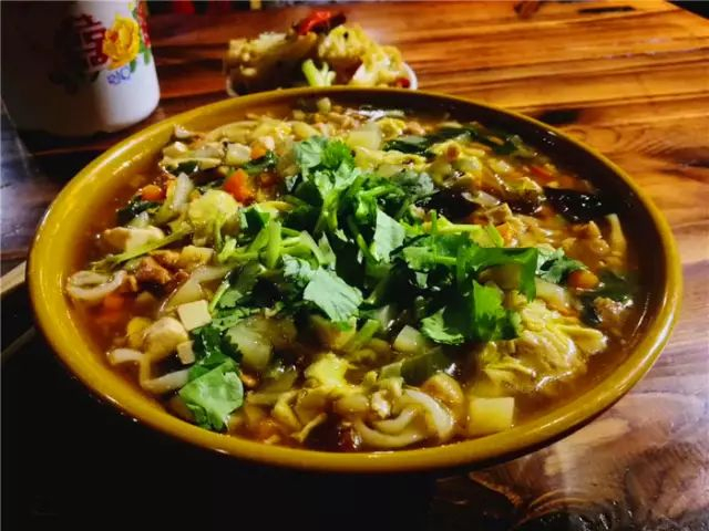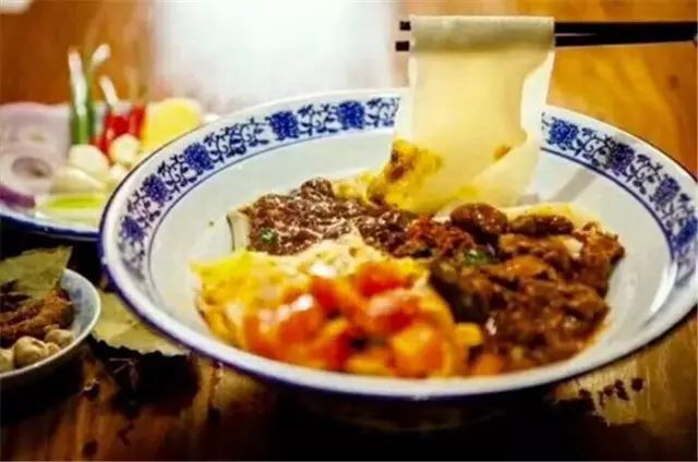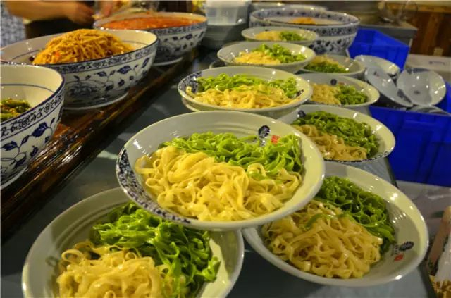 臊子面:木耳、黄花、豆腐、胡萝卜、土豆、豆角、瘦肉,精心切成小丁炒制成臊子,健壮的大嫂利落擀出一张面条,宽水沸煮,之后入碗浇入满福的臊子,搅拌的过程就已经咽起了口水;