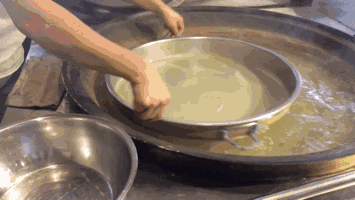 油壶喧:看似只是一道简单的薄饼,但是面、油、火候都得精道,等出锅撕成凌乱小片盛放于小竹盘中,却拼出了一个诱人的美食图案;