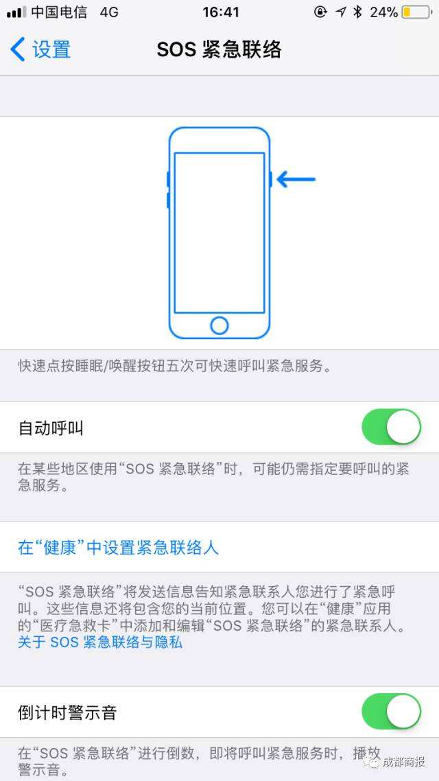 此外,iOS 11系统还增加了一个【SOS紧急联络】,快速按下右侧按钮五次就可以进行呼叫…