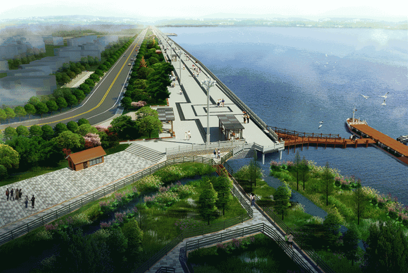 下沉式”亲水平台相比坝体高度下沉了1.5米,