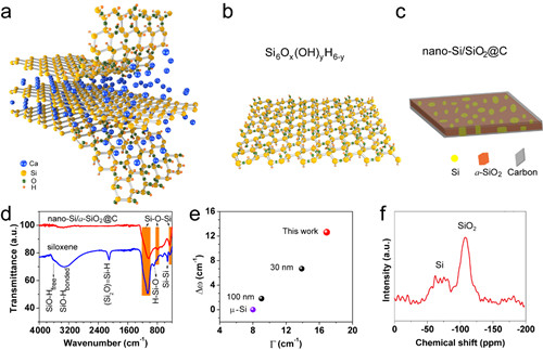该研究工作以Two-dimensional silicon suboxides nanostructures with Si nanodomains confined in amorphous SiO2 derived from siloxene as high performance anode for Li-ion batteries为题发表在Nano Energy上。