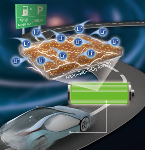 图4.二维纳米硅/二氧化硅复合材料用于长续航电动汽车动力电池示意图
