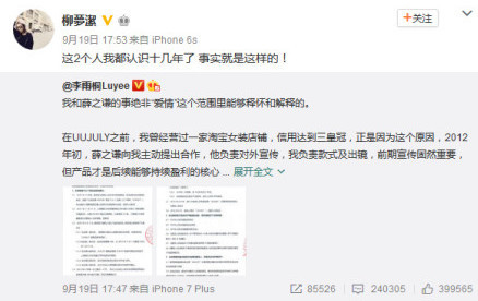 19日,李雨桐再发长文回应薛之谦此前的回应,获得其好友柳夢潔转发力挺。