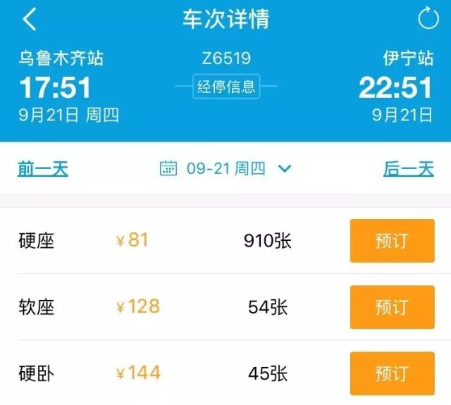 票价和乌鲁木齐至伊宁的其它列车相差甚微,略有不同的是,乌伊直达特快列车没有软卧,增设了软座。