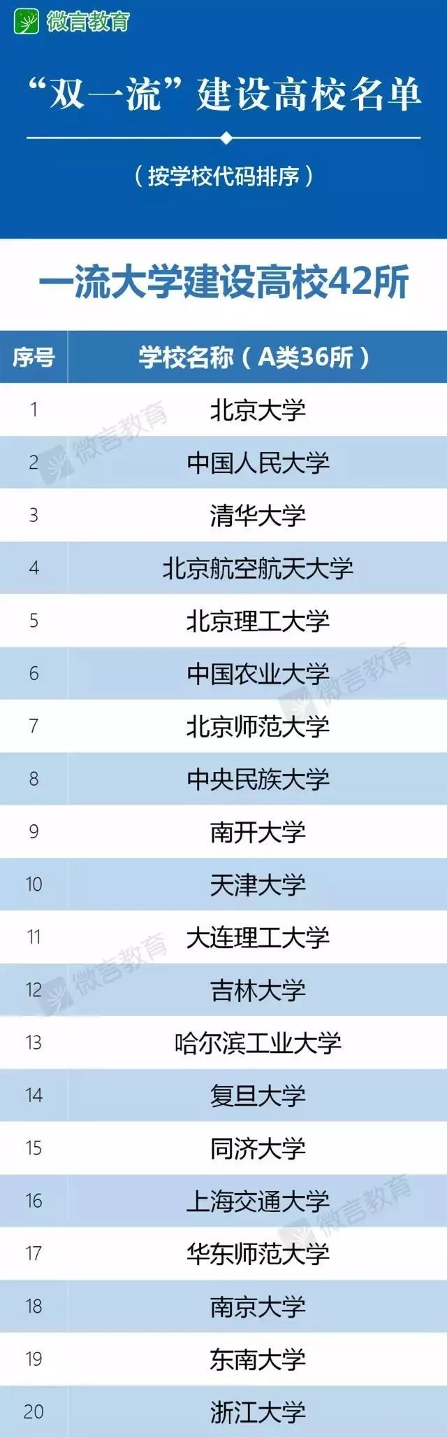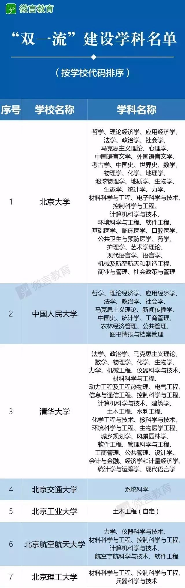 今天(9月21日),教育部新闻办官方微信称,日前,教育部、财政部、国家发展改革委印发《关于公布世界一流大学和一流学科建设高校及建设学科名单的通知》,公布世界一流大学和一流学科(简称“双一流”)建设高校及建设学科名单。