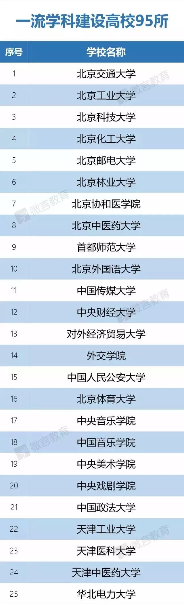 95所一流学科建设高校名单
