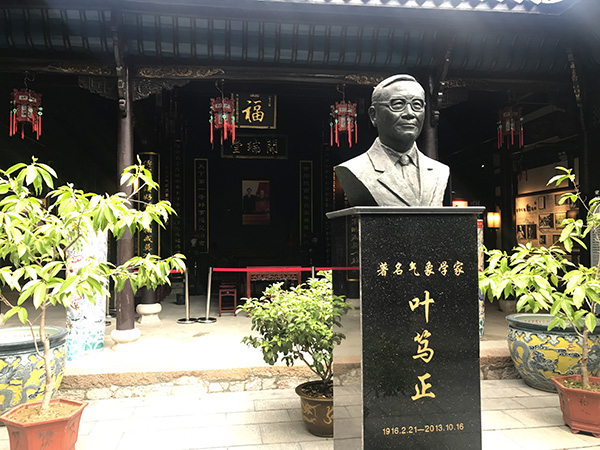 灰瓦白墙古韵的叶氏宗祠,坐落在安徽省安庆市宜秀区的书香一品小区的座座高层楼宇中间。从天柱山东路方向朝叶氏宗祠走进来,这段几百米的道路两侧,规整地树立着著名气象学家叶笃正的照片与格言。这条路,因此被称为气象一条街,和气象科普馆、陈列馆一起,成为叶笃正科普馆的一部分。