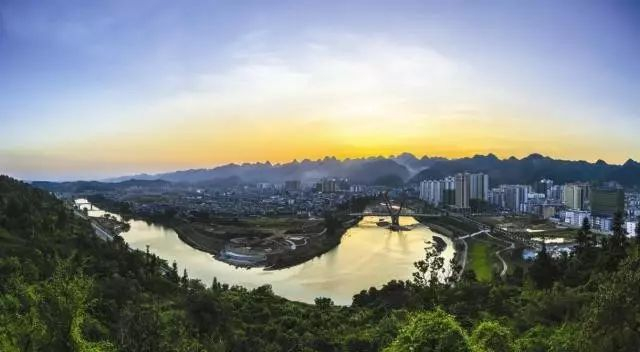 山水中的荔波县城全貌。
