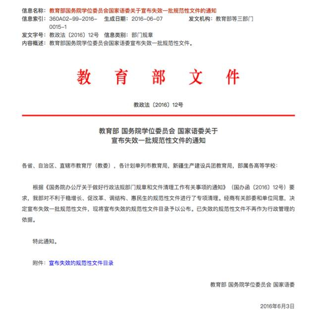 2016年6月,教育部宣布失效一批规范性文件,其中包括《关于继续实施“985工程”建设项目的意见》《关于补充高等教育“211工程”三期建设规划的通知》《关于实施“重点特色学科项目”的意见》《关于继续实施“优秀学科创新平台”建设的意见》等文件。