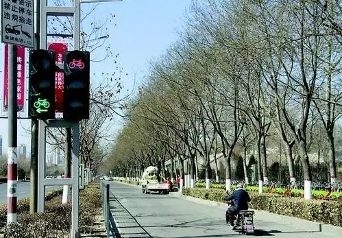 建议:增加机非隔离带,增加公交专用道,在人行道沿街布设自行车停车设施。