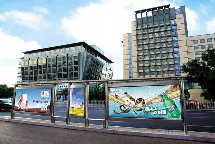 4、公交站台布置在人行道上时,应保证行人通行空间且站台不宜设置广告牌等构筑物。