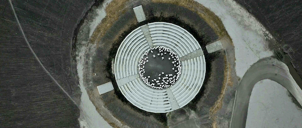 《干涸之地》(2015/2017)直面人类对世界产生的影响。作品全程使用无人机拍摄,科学家似乎在人类灭亡后的文明遗迹中进行考古,罗斯菲德的镜头在荒凉的景观和废墟上若有所思地徘徊。