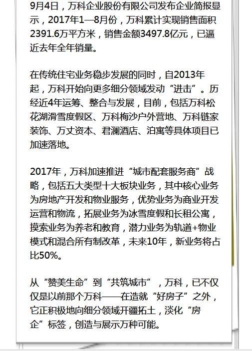 今年9月,将满33岁的万科集团从战略上已发生重大转变!在投资上真金白银进入多个非地产的新领域,真正进入“城市配套服务商”的角色。