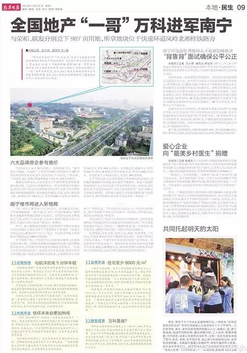 不到1个小时间,万科进南宁的首发微博转发和评论已超过300条。随后,在《南宁晚报》刊登了独家新闻“全国地产一哥万科进军南宁”!