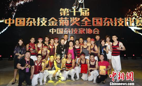 中新网北京9月21日电 (记者 应妮)第十届中国杂技金菊奖全国杂技比赛20日晚在山东蓬莱落幕,中国杂技团《九级浪—杆技》在30个参赛节目中脱颖而出,获得第十届中国杂技金菊奖。