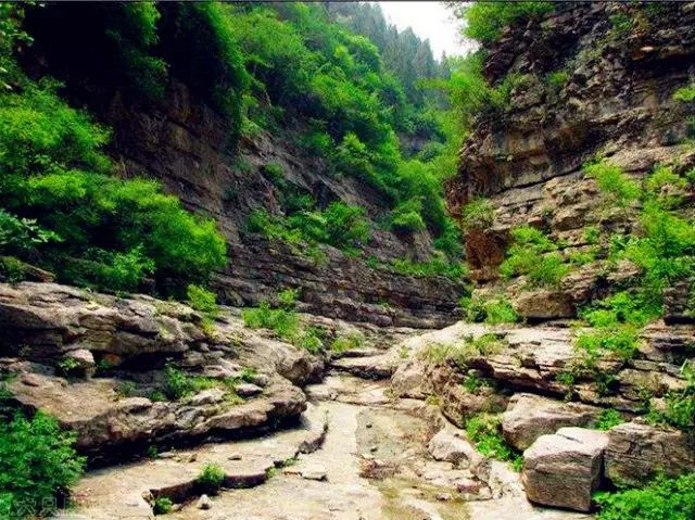 谷中植被不同于周边柏树的墨绿,更多的是桃树、核桃树、桑树、柳树、苦楝和绿檀,高大的树木,使谷中更加阴翳蔽日。