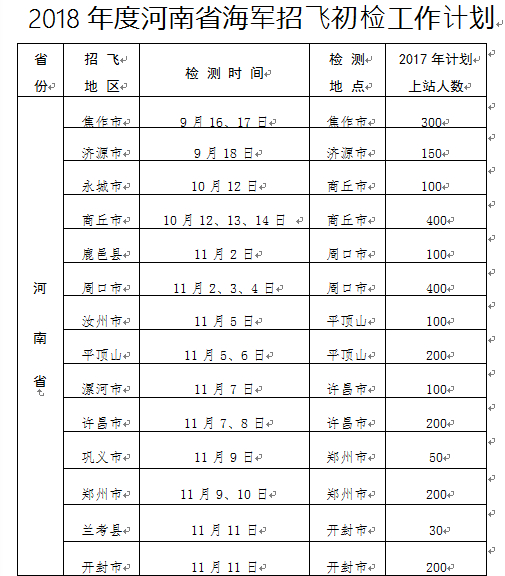 服务 | 2018年度海军招飞初检全面展开,覆盖全国9省(市)