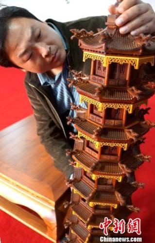 张焕然制作的浓缩版“雷峰塔”。 潘志方 摄