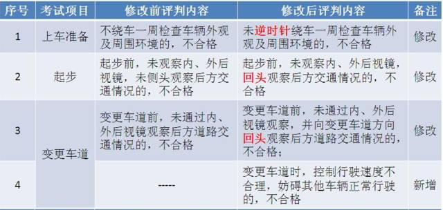 科目三路考的起步、变更车道、靠边停车、超车项目中增加了“回头观察”动作考核,直行通过路口、左右转弯等项目不主动避让优先通行车辆、行人、非机动车的评判为不合格,从细节动作考核安全文明意识,突出实际道路驾驶需要,培养考生良好驾驶习惯。