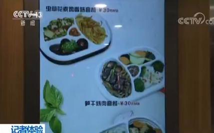 记者:现在我们就来到了餐车吧,复兴号的一大特色就是有液晶显示屏来显示菜单和价格。我们了解到盒饭是从15块到60块四个价位,而且每个价位都有两种菜品的选择。