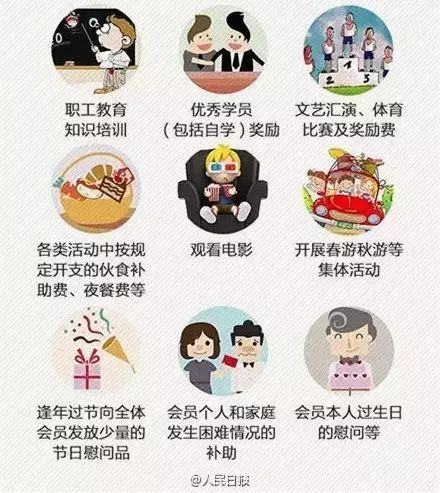 其中,福利费主要用于解决工作人员的生活困难补助,同时补贴集体福利;而工会经费根据《中华全国总工会关于加强基层工会经费收支管理的通知》(总工办发[2014]23号)规定,可以用于工会组织的职工集体福利等方面的支出,如用于工会组织逢年过节向全体会员发放少量的节日慰问品等。