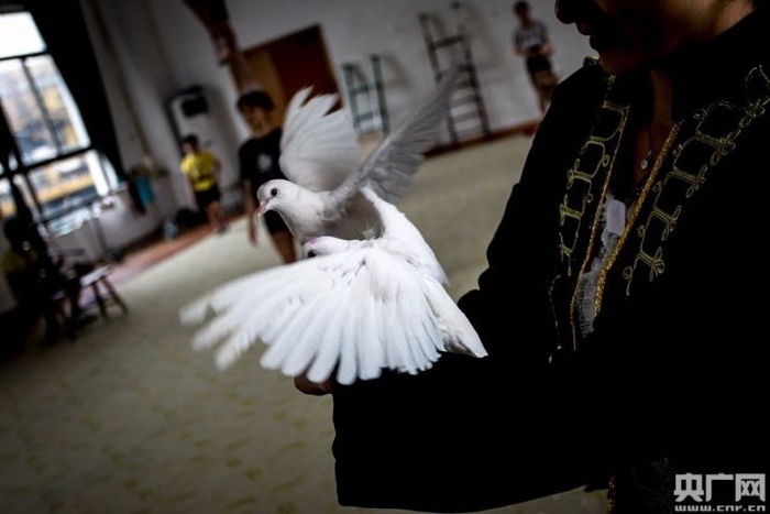刚开始学习魔术的时候,丁洋做得最多的事就是帮老师喂鸽子,每天的重复工作让她觉得枯燥乏味,心情不好的时候她就和鸽子对话。“魔术师和鸽子的交流互动很重要,现在回想起来,那其实是老师的良苦用心。”丁洋说。