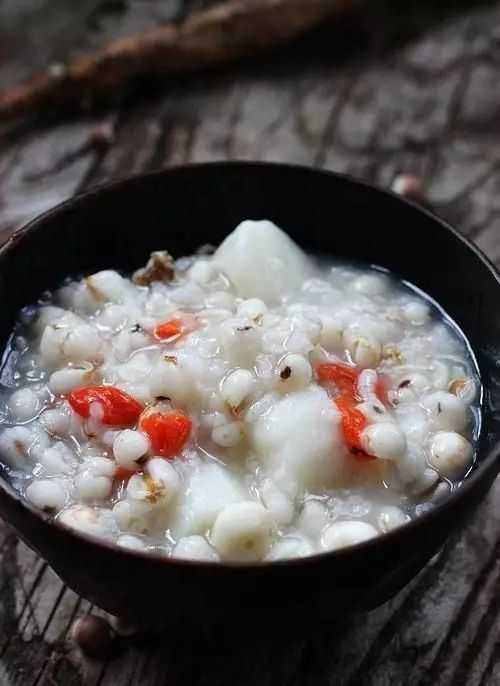 食材:红枣、山药、薏米、大米、鸡头米、枸杞。