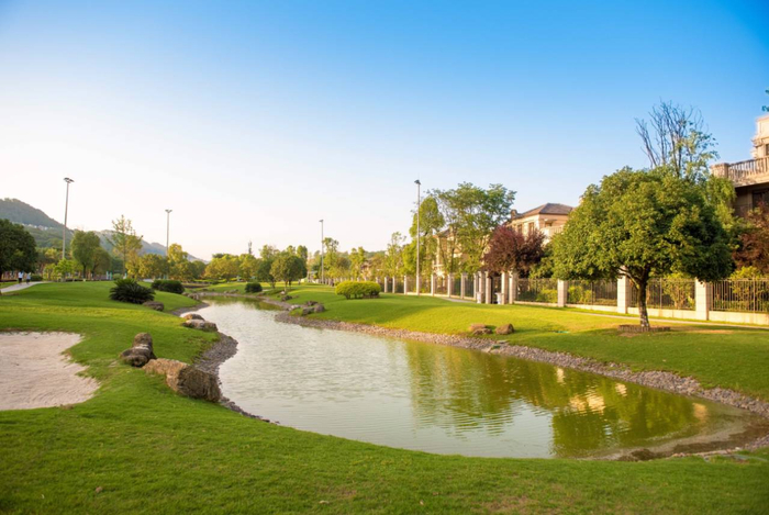 就在南山上,环境非常好,群山环绕,绿树成荫。空气不要太清新!宽阔大气的高尔夫球场让人眼前一亮。