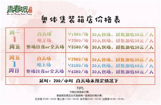 青春派轰趴:提供汽博loca店一场10-15人的场次