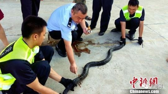 近日,一条黑黄相间的眼镜王蛇缓缓爬入镇沅县恩乐镇一村民的院子被森警捕获救助,这是今年以来拜访恩乐镇农家的第3条眼镜王蛇。当地森林公安称,村民家中常现蛇类,是生态环境变好“惹的祸”。