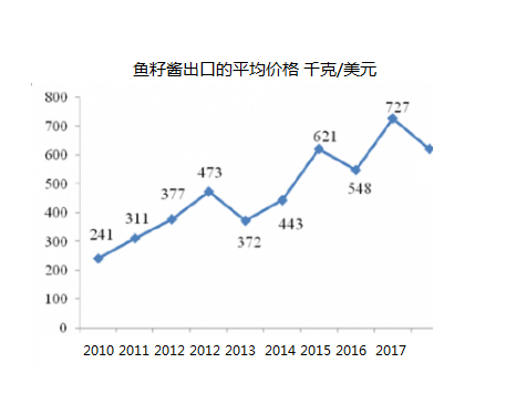 俄联邦海关署数据也显示,2015年俄罗斯从中国进口了743.5千克鱼子酱,2016年则达到3.9吨,而出口到白俄罗斯的数量与此基本相符。
