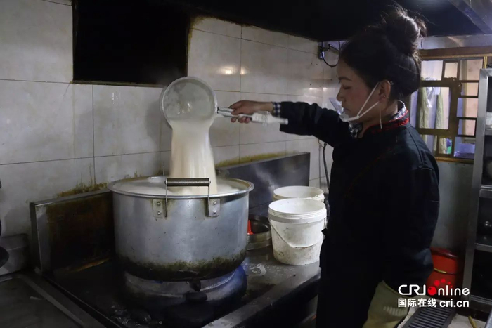 拉萨人日日不离的藏式甜茶,是怎样制作的呢?店老板洛桑扎西介绍说,熬制甜茶的主要原料是印度进口红茶和奶粉,正规甜茶馆按传统的配方,口味一般差别不大。把印度红茶放在茶包里熬出茶汤,再把奶粉兑水后用搅拌机搅拌,分数次倒入茶汤中熬煮。熬制时,需要不断搅动防止糊锅。