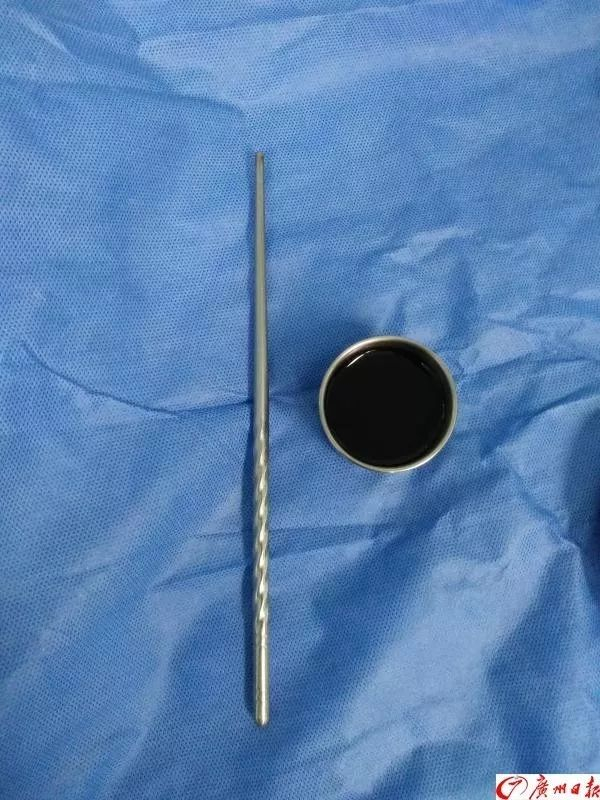 筷子应该如何取出?经过神经外科、眼科专家慎重评估,认为可以直接取出筷子,前提是做好各种预案,万一取出过程中大出血,可以随时转为开颅手术。凌晨3时多,颅脑外科、眼科等等多学科专家合作,完整取出了肇事的筷子,没有出现明显的出血。