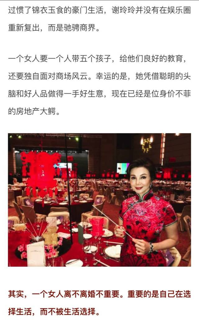 哪怕离婚之后,谢玲玲仍然和婆婆十分亲近。公公过世时,婆婆悲痛欲绝,不让任何子女靠近自己。也正是由于谢玲玲的陪伴和照顾,婆婆才能坚强生活下去。