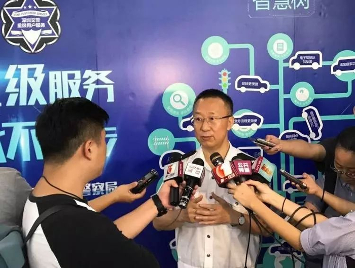 深圳市交警局副局长冯新毅接受采访。