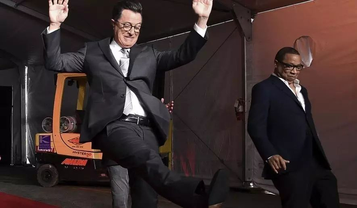 脱口秀节目主持人史蒂芬·科尔伯特一开场就定下了“怼特”的基调: