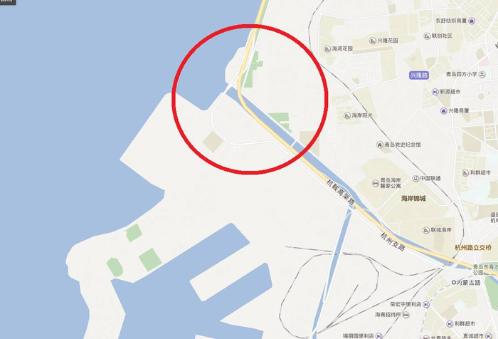 ▲胶州湾东岸位置(海泊河入海口附近)