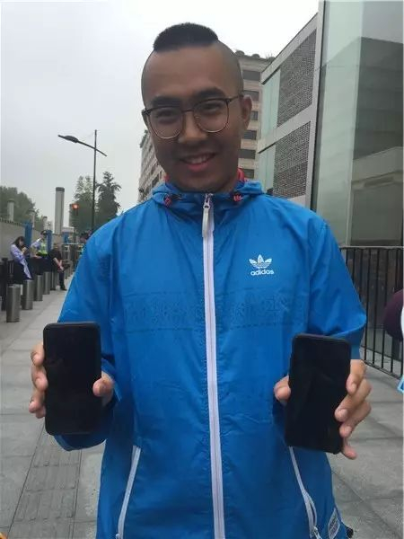 第一位是何先生,新机拿在手上就直接出来了,问他手感怎么样:“(跟iPhone 7)一样一样,我赶着去上班!”